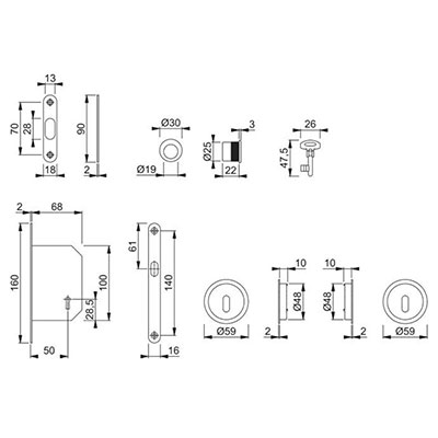 Kit poignée cuvette ronde alu pour porte coulissante avec serrure